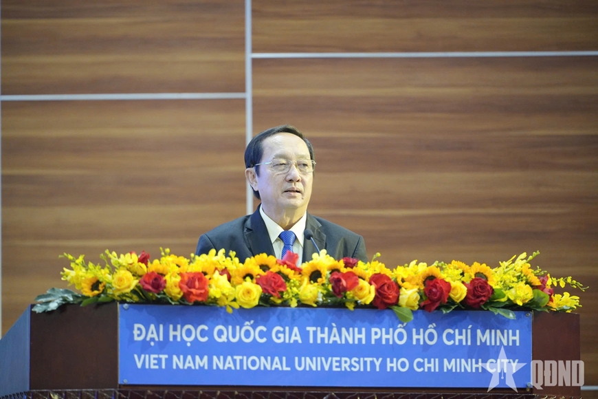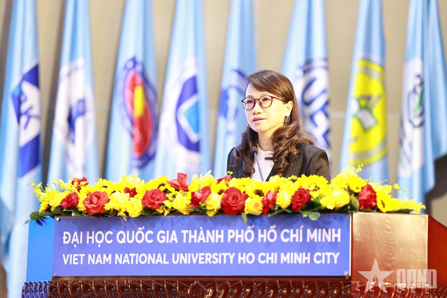 | GS, TS Nguyễn Thị Thanh Mai, Phó giám đốc ĐHQG TP Hồ Chí Minh phát biểu tại hội thảo. |