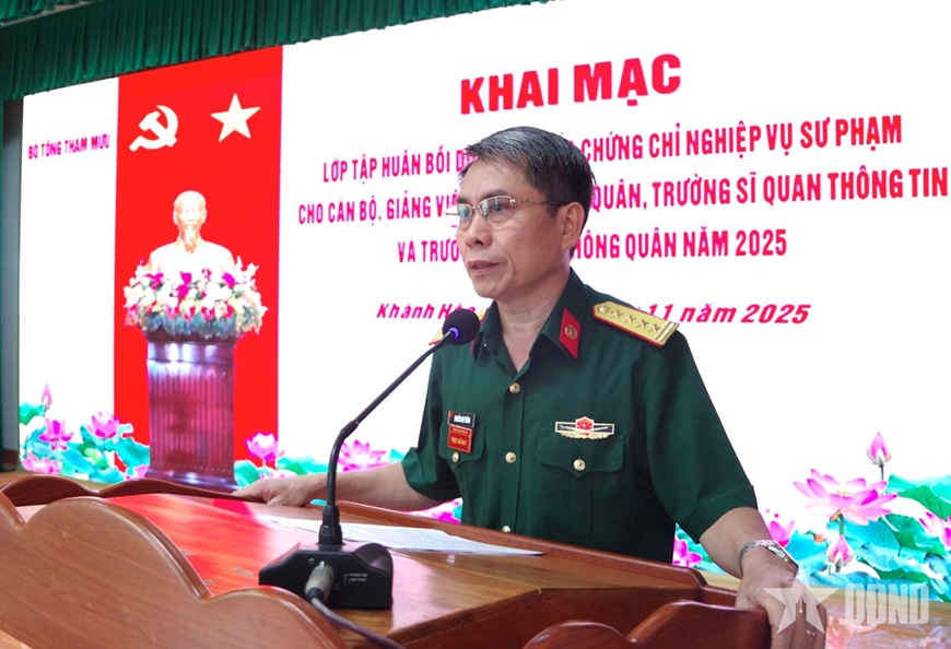 Sáng 3-11, tại Trường Sĩ quan Thông tin, Cục Quân huấn - Nhà trường/Bộ Tổng Tham mưu phối hợp với Trường Đại học Giáo dục (Đại học Quốc gia Hà Nội) tổ chức khai mạc Lớp tập huấn bồi dưỡng và cấp chứng chỉ nghiệp vụ sư phạm cho các giảng viên Học viện, Trường sĩ quan Quân đội năm 2025.