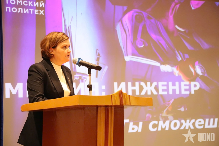 | Đại diện Trường Đại học Bách khoa Tomsk giới thiệu về trường của mình với các học sinh, sinh viên. |