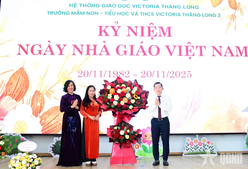 Phát biểu tại chương trình, cô giáo Trần Thị Thúy, Hiệu trưởng Trường Tiểu học và Trung học cơ sở Victoria Thăng Long 3 bày tỏ lòng biết ơn sâu sắc tới cấp ủy, chính quyền địa phương và các tổ chức, cá nhân đã luôn đồng hành, hỗ trợ để Nhà trường hoàn thành tốt nhiệm vụ giáo dục. Sự quan tâm của lãnh đạo các cấp, những tình cảm của quý phụ huynh và học sinh chính là cội nguồn thắp lửa, tiếp thêm tình yêu, nhiệt huyết với nghề trồng người, cho đội ngũ nhà giáo thêm động lực mạnh mẽ để không ngừng sáng tạo, tiếp tục góp phần xây dựng Nhà trường với những giá trị giáo dục bền vững. Đồng thời khẳng định đội ngũ giáo viên Victoria Thăng Long 3 sẽ tiếp tục phát huy tinh thần trách nhiệm, giữ vững ngọn lửa nhiệt huyết để nuôi dưỡng và chắp cánh cho những mầm xanh tương lai.