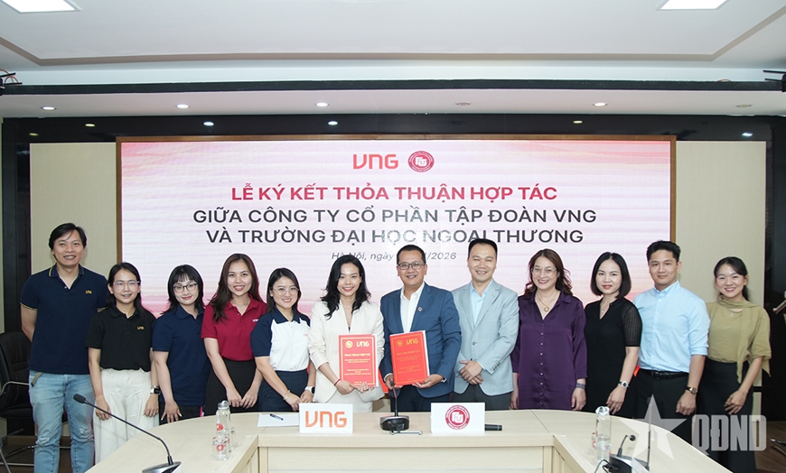 | Đại diện của VNG và Trường Đại học Ngoại thương ký kết thỏa thuận hợp tác giai đoạn 2026–2030. |