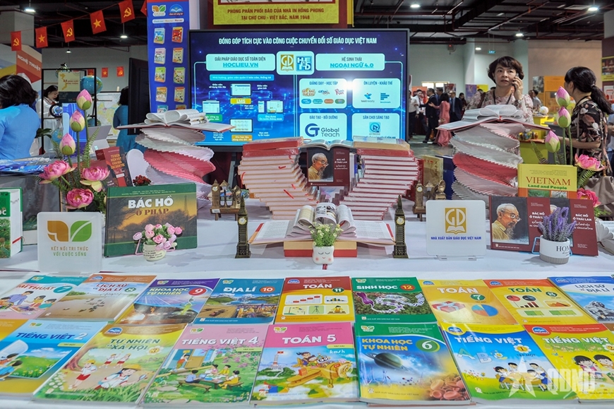 Sách giáo khoa tại Triển lãm thành tựu đất nước tháng 8-2025.
