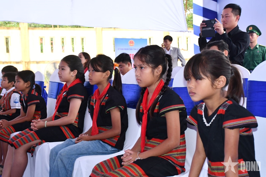 | Học sinh Bru-Vân Kiều xã Kim Ngân vui mừng tham gia buổi lễ. |