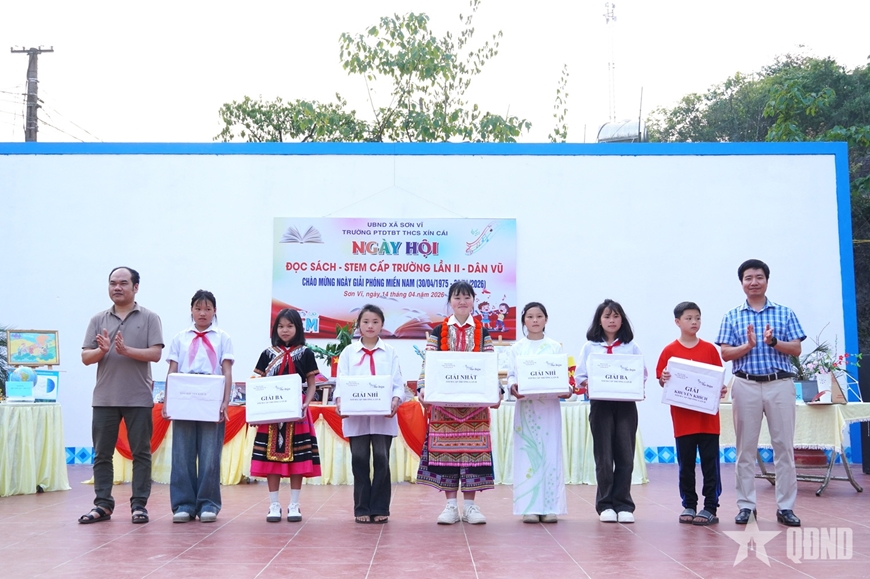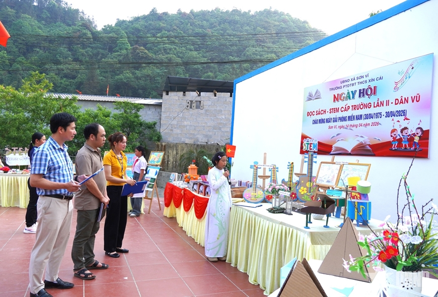 Hưởng ứng Ngày Sách và Văn hóa đọc Việt Nam (21-4) và Ngày Sách và Bản quyền thế giới (23-4), chiều 14-4, Trường Phổ thông Dân tộc bán trú Trung học cơ sở Xín Cái, xã Sơn Vĩ, tỉnh Tuyên Quang tổ chức Ngày hội “Đọc sách - STEM - Dân vũ” năm học 2025–2026 với nhiều hoạt động sôi nổi, ý nghĩa, thu hút đông đảo cán bộ, giáo viên, học sinh và phụ huynh tham gia.