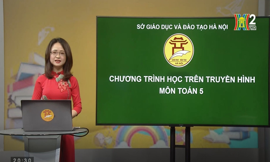 | Dạy Toán lớp 5 trên Đài Truyền hình Hà Nội.Ảnh chụp màn hình |
