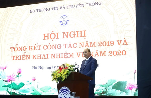 Phát biểu chỉ đạo hội nghị, Thủ tướng Nguyễn Xuân Phúc đã chúc mừng những kết quả đạt được của Bộ TT&TT trong thời gian vừa qua. Thủ tướng Nguyễn Xuân Phúc cho biết, năm 2019, điểm lại thấy Bộ TT&TT có nhiều tiến bộ rõ, nói đi đôi với làm. Ngành TT&TT vượt qua nhiều khó khăn, thách thức, nhất là cạnh tranh nhân tài và công nghệ hay về bảo vệ chủ quyền trên không gian mạng.