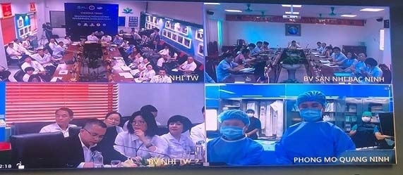 | Bác sĩ sử dụng hệ thống Telehealth của Viettel để khám, chữa bệnh từ xa. |