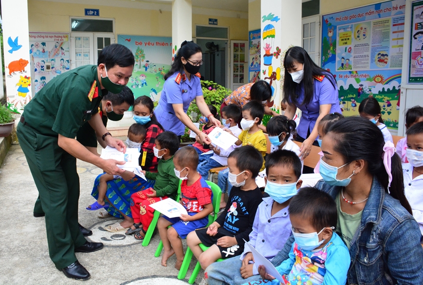 Sáng 9-9, Phòng Kiểm sát việc tạm giữ, tạm giam và thi hành án (P8), Viện Kiểm sát nhân dân tỉnh Điện Biên phối hợp với Ban CHQS TP Điện Biên Phủ tổ chức trao 20 suất quà tặng các em học sinh có hoàn cảnh khó khăn Trường Mầm non Họa Mi và Trường Tiểu học Hoàng Văn Nô, xã Thanh Minh, TP Điện Biên Phủ.