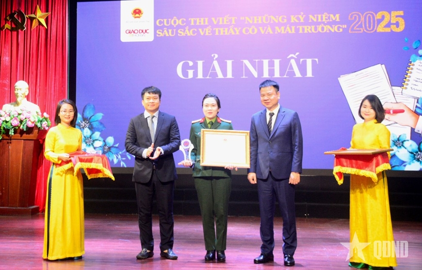 Thượng úy Nguyễn Thị Hằng, Trường Đại học Văn hóa nghệ thuật Quân đội nhận giải Nhất Cuộc thi "Những kỷ niệm sâu sắc về thầy cô và mái trường" năm 2025.