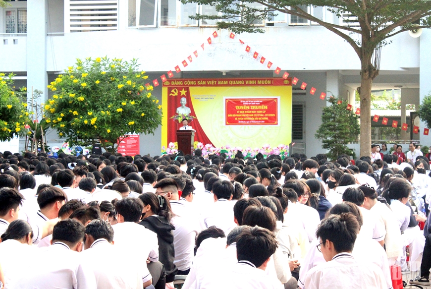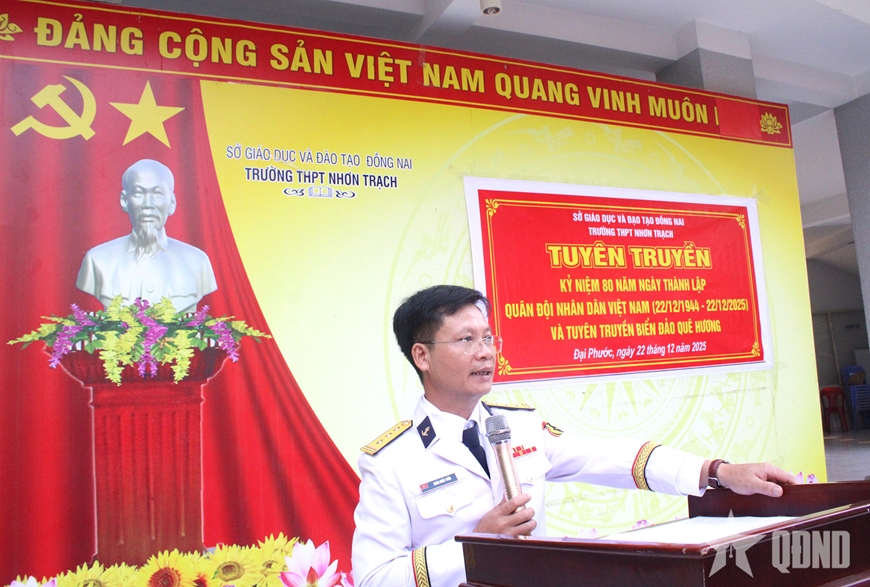 Tại buổi tuyên truyền, gần 1.000 cán bộ, đảng viên, giáo viên và học sinh khối 12 Trường THPT Nhơn Trạch được nghe báo cáo viên của Trung tâm Bảo đảm kỹ thuật Vùng 2 Hải quân thông tin về vị trí, vai trò, tầm quan trọng của biển, đảo Việt Nam trong sự nghiệp xây dựng và bảo vệ Tổ quốc; các quan điểm, chủ trương của Đảng, chính sách của Nhà nước trong bảo vệ chủ quyền biển, đảo của Tổ quốc trong tình hình hiện nay; quá trình xây dựng, chiến đấu, chiến thắng và trưởng thành của Hải quân nhân dân Việt Nam...