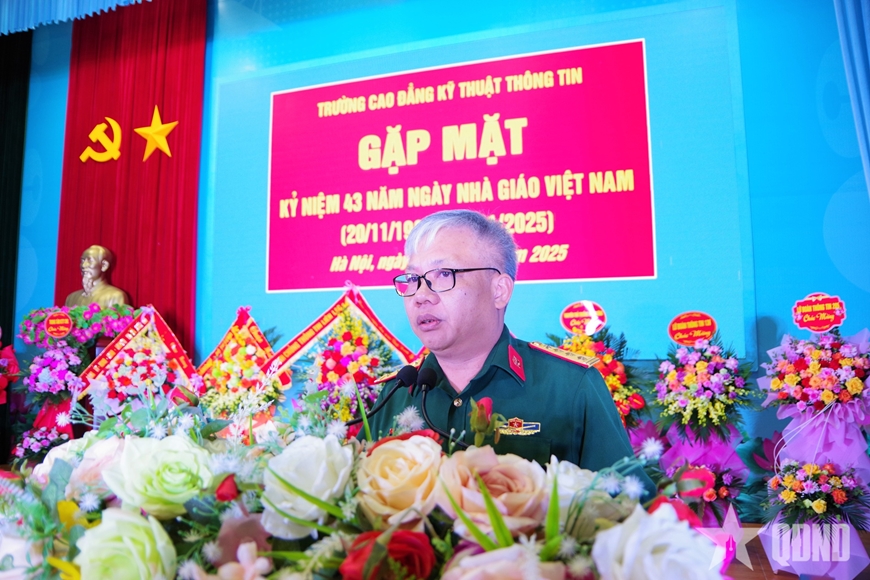 Phát biểu tại buổi gặp mặt, Đại tá Trần Đức Thọ, Phó tư lệnh Binh chủng Thông tin liên lạc ghi nhận, biểu dương và chúc mừng những kết quả mà nhà trường đã đạt được trong công tác giáo dục, đào tạo thời gian qua. Đồng chí nhấn mạnh trong bối cảnh cuộc Cách mạng công nghiệp lần thứ tư đang tác động mạnh mẽ tới mọi lĩnh vực của đời sống xã hội, yêu cầu về xây dựng nguồn nhân lực chất lượng cao cho lực lượng thông tin liên lạc, tác chiến điện tử, tác chiến không gian mạng ngày càng lớn, Trường Cao đẳng Kỹ thuật Thông tin cần tiếp tục phát huy truyền thống, chủ động đổi mới, sáng tạo trong công tác quản lý, giảng dạy và nghiên cứu khoa học. Đồng chí mong muốn đội ngũ cán bộ, giảng viên nhà trường luôn giữ vững bản lĩnh chính trị, phẩm chất đạo đức nhà giáo Quân đội, không ngừng học tập, rèn luyện, ứng dụng công nghệ mới vào giảng dạy, góp phần đào tạo nguồn nhân lực kỹ thuật thông tin có trình độ, bản lĩnh, đáp ứng tốt yêu cầu nhiệm vụ xây dựng Quân đội cách mạng, chính quy, tinh nhuệ, hiện đại.