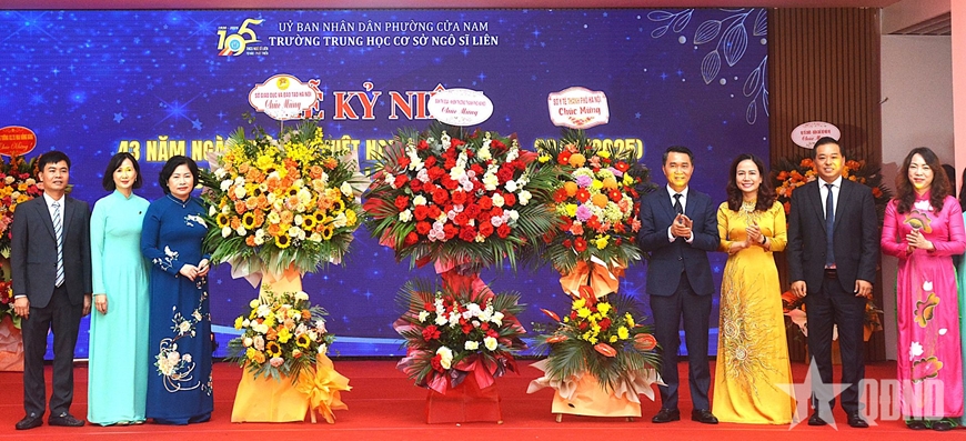 Tham dự buổi lễ, đồng chí Phạm Tuấn Long, Bí thư Đảng ủy, Chủ tịch HĐND phường Cửa Nam (TP Hà Nội) biểu dương những thành tựu Trường THCS Ngô Sĩ Liên đạt được trong thời gian qua. Đồng chí Phạm Tuấn Long nhấn mạnh: “Những năm gần đây, Trường THCS Ngô Sĩ Liên luôn chủ động đổi mới toàn diện: Từ chương trình giáo dục đến phương pháp dạy học, từ xây dựng môi trường văn hóa học đường đến tăng cường các hoạt động rèn luyện kỹ năng sống, giáo dục giá trị sống cho học sinh. Nhiều thầy cô có chuyên môn vững vàng, phong cách sư phạm mẫu mực; nhiều học sinh đạt giải cao trong các kỳ thi học sinh giỏi, thi khoa học kỹ thuật, thi năng khiếu nghệ thuật, thể thao. Nhà trường luôn giữ gìn và phát huy tinh thần đoàn kết, dân chủ, sáng tạo, tất cả vì học sinh thân yêu".