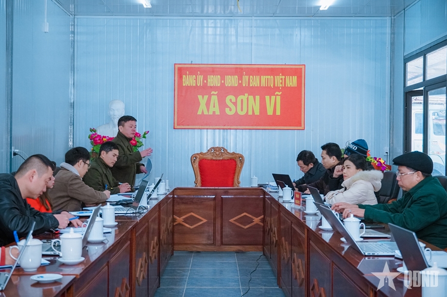 | Quang cảnh buổi làm việc tại trụ sở xã Sơn Vĩ (Tuyên Quang). |