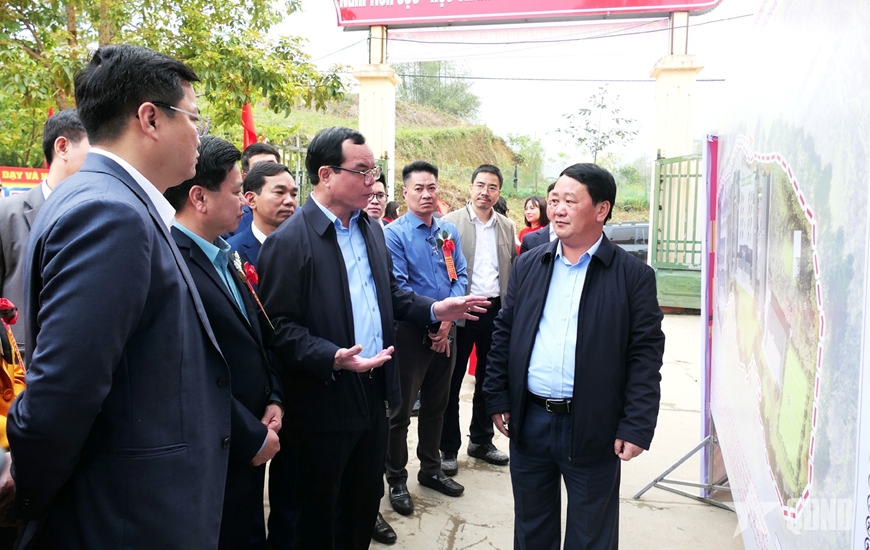Các đồng chí lãnh đạo Bộ Dân tộc và Tôn giáo, lãnh đạo tỉnh Tuyên Quang đã thực hiện nghi thức khởi công xây dựng 11 trường phổ thông nội trú liên cấp tiểu học và trung học cơ sở tại các xã biên giới.
