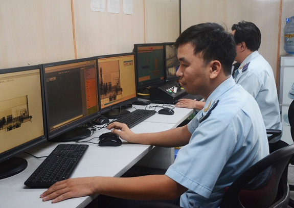 Nhân viên Chi cục Hải quan Cửa khẩu cảng Sài Gòn khu vực I ứng dụng công nghệ kiểm tra, thông quan hàng hóa. |