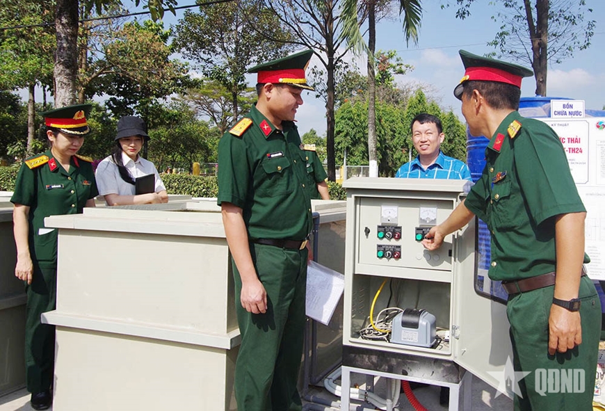 Hội đồng nghiệm thu kỹ thuật đã kiểm tra thực tế 3 hệ thống xử lý nước thải nhiễm xăng, dầu lắp đặt tại khu rửa xe của các Tiểu đoàn 51, 53 và 55 thuộc Lữ đoàn 972.