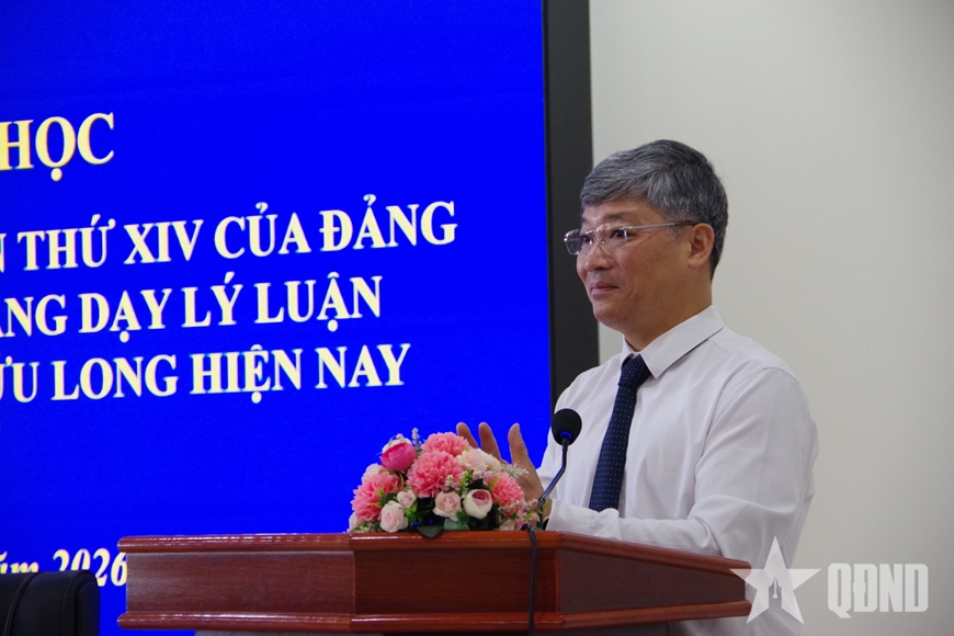 Phát biểu đề dẫn, PGS, TS Nguyễn Xuân Phong, Phó giám đốc Học viện Chính trị khu IV nhấn mạnh, Đại hội XIV của Đảng là dấu mốc quan trọng, mở ra “kỷ nguyên mới - kỷ nguyên vươn mình của dân tộc”. Văn kiện Đại hội không chỉ kế thừa thành tựu 40 năm đổi mới mà còn phát triển tư duy lý luận với nhiều nội dung đột phá như lấy khoa học, công nghệ, đổi mới sáng tạo và chuyển đổi số làm động lực trung tâm; phát triển kinh tế xanh, kinh tế tuần hoàn; đồng thời hoàn thiện hệ thống lý luận với 10 mối quan hệ lớn mang tính quy luật.
