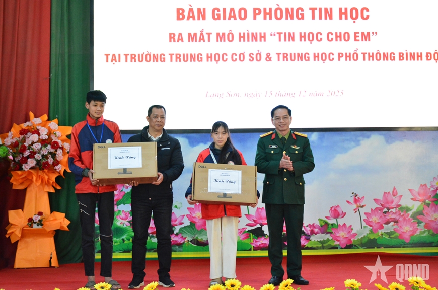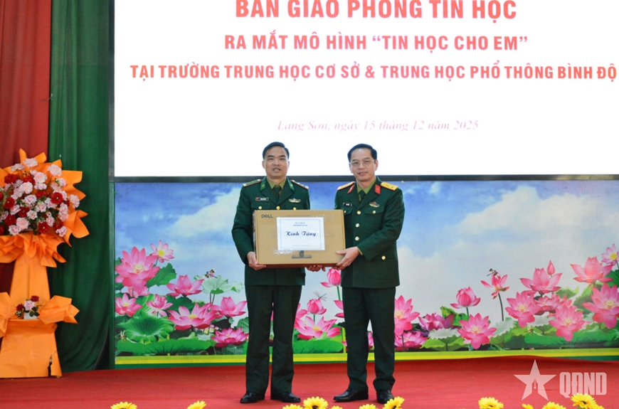| Nhân dịp này, Bộ tư lệnh 86 đã trao máy tính tặng cán bộ, chiến sĩ Đồn Biên phòng Bình Nghi, Ban chỉ huy Bộ đội Biên phòng tỉnh Lạng Sơn. |