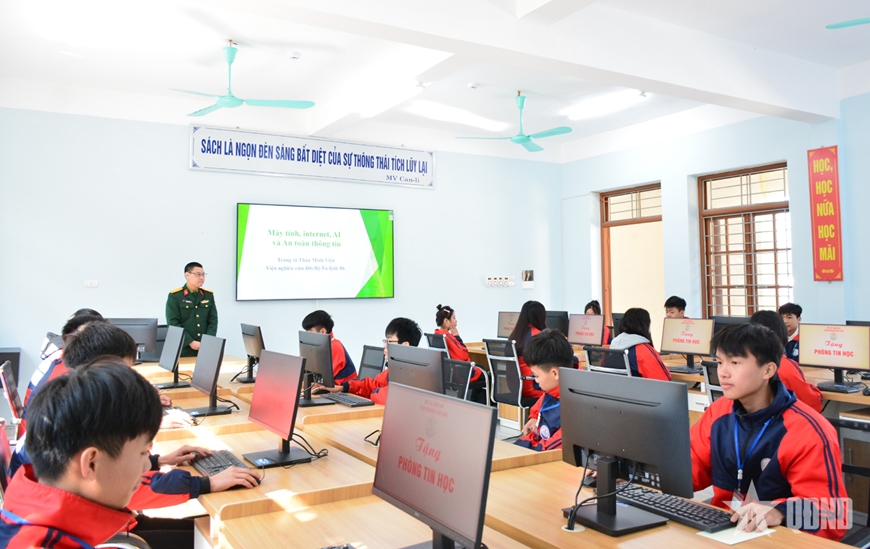 Trong khuôn khổ chương trình, Viện nghiên cứu 486 đã tổ chức bồi dưỡng tin học cơ bản kết hợp phổ biến một số biện pháp bảo đảm an toàn thông tin trên không gian mạng đến thầy cô và học sinh của trường.
