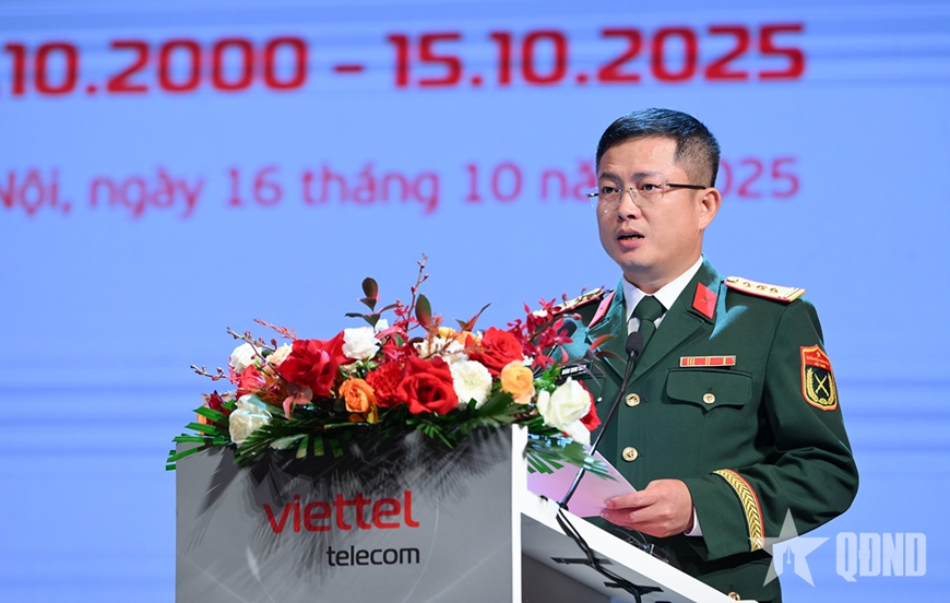 Thượng tá Hoàng Trung Thành, Tổng giám đốc Viettel Telecom phát biểu tại buổi lễ. |