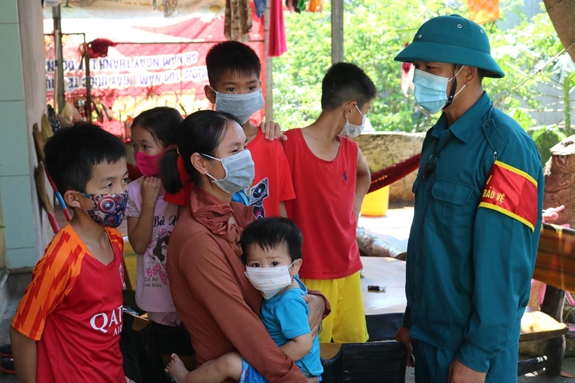 Đến bây giờ bà con thôn Sơn Long, xã Quỳnh Lập đã phần nào vơi bớt nỗi lo sau khi di chuyển vào khu cách ly tập trung. Bởi hầu hết người dân thôn Sơn Long là trường hợp F1 liên quan đến ca dương tính với virus SARS-CoV-2. Vậy nhưng, với sự có mặt của lực lượng dân quân, trong đó vai trò nêu gương của các đảng viên dân quân đã phần nào giúp bà con yên tâm cách ly. Hằng ngày, ngoài việc bảo đảm trật tự ở các chốt kiểm soát, chuẩn bị bữa ăn phục vụ bà con trong khu cách ly tập trung, các anh thay nhau đến giúp các gia đình chăm sóc gia súc, gia cầm; bảo vệ tài sản… Từ khu cách ly, qua đường dây điện thoại bà Hồ Thị Hoa, ở thôn Sơn Long thường xuyên nắm tình hình gia đình từ các chiến sĩ dân quân. Xúc động trước hành động của các chiến sĩ “sao vuông” xã nhà, bà Hồ Thị Hoa nói: “Các chú dân quân không khác gì người thân thiết đối với bà con chúng tôi trong mọi tình huống. Không có sự giúp đỡ của các chú dân quân, trong đợt cách ly này bà con chúng tôi không biết xoay xở thế nào. Vì hầu hết bà con trong thôn đều vào khu cách ly y tế tập trung cả”.