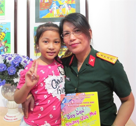 QĐND - Tại khu triển lãm Cuộc thi Vẽ tranh thiếu nhi toàn quân 2015, hai cháu Nguyễn Phương Trúc Linh và Nguyễn Hà Nhã Lan xinh xắn trong bộ váy mới, tay ôm khư khư tấm bằng chứng nhận đoạt giải cuộc thi, cứ chụm đầu vào nhau thì thầm to nhỏ khiến mọi người tưởng đó là cặp chị em sinh đôi...