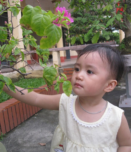 QĐND - Thi thoảng, cháu Ngô Quỳnh Anh, con của Thượng úy QNCN Ngô Mạnh Quân, nhân viên Ban Hậu cần-Kỹ thuật, Ban CHQS huyện Quế Võ (Bắc Ninh) lại đòi mẹ đưa vào đơn vị bố để… ngắm cây cảnh! Mẹ vừa bế xuống xe, Quỳnh Anh vội chào các chú rồi đi khắp khuôn viên doanh trại để ngắm và “trò chuyện” với những bông hoa ngát thơm, những cây cảnh kiểu dáng đẹp...