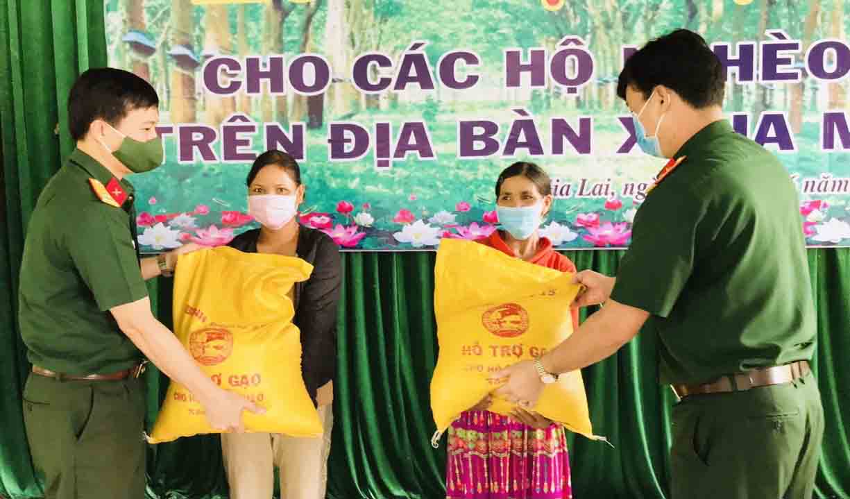 QĐND Online – Nhằm hỗ trợ cho bà con vùng biên giới có gạo để ăn trong mùa giáp hạt, sáng 9-6, đoàn công tác của Binh đoàn 15 do Thượng tá Đặng Quang Dũng, Chủ nhiệm Chính trị dẫn đầu đã đến xã Ia Mơ, thuộc vùng biên giới huyện Chư Prông, tỉnh Gia Lai để thăm hỏi và cấp hỗ trợ hơn 6 tấn gạo, trị giá gần 100 triệu đồng cho các hộ dân khó khăn.