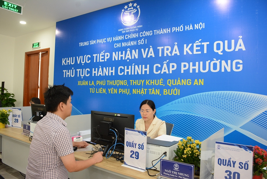 | Người dân làm dịch vụ công tại Trung tâm Phục vụ hành chính công TP Hà Nội. Ảnh: HOÀNG CHUNG |