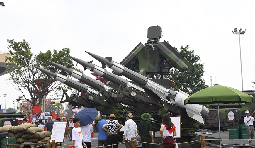 | Vũ khí, khí tài quân sự hiện đại của Quân đội được trưng bày tại Triển lãm thành tựu đất nước với chủ đề "80 năm hành trình Độc lập - Tự do - Hạnh phúc". Ảnh: TUẤN HUY |
