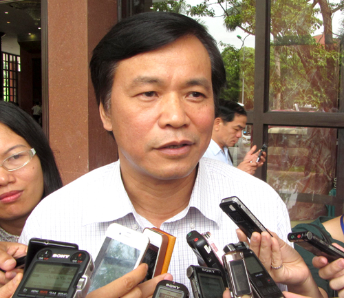 Chủ nhiệm Văn phòng Quốc hội, Trưởng đoàn Thư ký kỳ họp Quốc hội Nguyễn Hạnh Phúc trao đổi với phóng viên