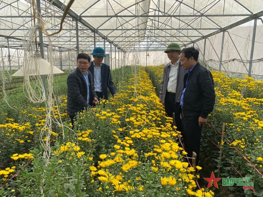 | Mô hình trồng cây hoa cúc áp dụng công nghệ chiếu sáng bằng đèn Led tại huyện Nam Đàn. Ảnh do Trung tâm khuyến nông tỉnh Nghệ An cung cấp |