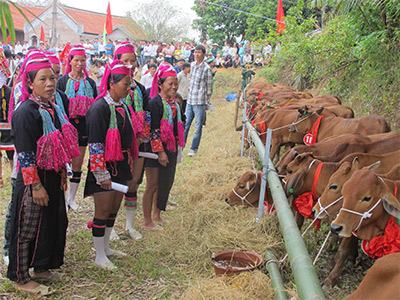 Những phụ nữ người dân tộc Dao Thanh Y này có cơ hội đổi đời từ con bò do chương trình "Bò giống giúp người nghèo biên giới" tặng.
