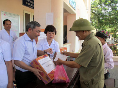 | Phó giám đốc Bệnh viện Bạch Mai Nguyễn Ngọc Hiền tặng quà cho người dân xã Xuân Cao |