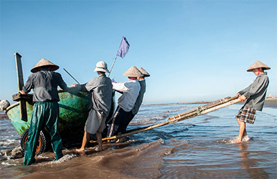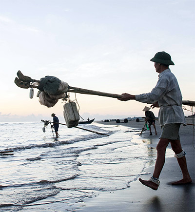 Bắt đầu một ngày mới với khá nhiều công việc bận rộn của những ngư dân ven biển Hải Lý (huyện Hải Hậu, tỉnh Nam Định). Mọi người tất bật chuẩn bị ngư cụ; người đi te, người gỡ lưới, kéo thuyền...