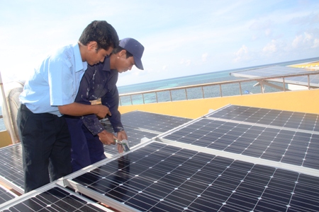Tại đảo Phan Vinh B, chúng tôi gặp Tổ lắp đặt thiết bị năng lượng mặt trời do anh Nguyễn Văn Lộc, công nhân viên quốc phòng Nhà máy Z753 Quân chủng Hải quân chỉ huy đang miệt mài thi công. Anh Lộc cho biết, đơn vị đang nhận chuyển giao công nghệ của Công ty Mặt trời Bách khoa để sang năm 2015 có thể tự chủ lắp đặt, bảo trì, vận hành toàn bộ các thiết bị năng lượng trên quần đảo. Theo anh Lộc, với một nửa quân số của nhà máy thường xuyên làm việc phục vụ trên quần đảo Trường Sa và nhà giàn DK1 hiện nay, sau khi chuyển giao công nghệ, sẽ khắc phục cơ bản tình trạng hư hỏng, đáp ứng nhu cầu “điện sạch” cho quân và dân trên quần đảo.