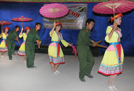 Đêm giao lưu chưa bắt đầu, sân nhà văn hóa xóm đã không còn chỗ trống. Đáp lại tình cảm mộc mạc của bà con, tuổi trẻ đơn vị đã có một đêm diễn ấn tượng. Truyền thống vẻ vang của Đảng, quân đội được các đoàn viên, thanh niên tái hiện qua các giai đoạn, thời kỳ lịch sử. Hình ảnh Bộ đội Cụ Hồ, người lính pháo binh “chân đồng, vai sắt” hiện lên sinh động trên nền giai điệu “Hò kéo pháo”, “Chiến thắng Điện Biên”, hay trong khung cảnh lao động sản xuất giữa thời bình... Bà Nguyễn Thị Bảy, Trưởng xóm rất vui: “Chẳng mấy khi thanh niên xóm có mặt đông đủ thế này. Các cháu nhỏ mọi khi chỉ mải nô đùa, vậy mà hôm nay chăm chú theo dõi từ đầu đến cuối”.