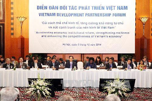 Tại VDPF 2014, Giám đốc Quốc gia WB tại Việt Nam V.Qua-qua khẳng định, các đối tác phát triển sẽ luôn sát cánh cùng Chính phủ Việt Nam trong thực hiện các mục tiêu phát triển. Trong vòng hơn hai thập kỷ qua, các nhà tài trợ, nay là các đối tác phát triển quốc tế, đã cam kết cho Việt Nam vay hơn 80 tỷ USD vốn ODA, trong đó hơn một nửa đã được giải ngân, góp phần quan trọng vào tiến trình phát triển kinh tế-xã hội của Việt Nam.