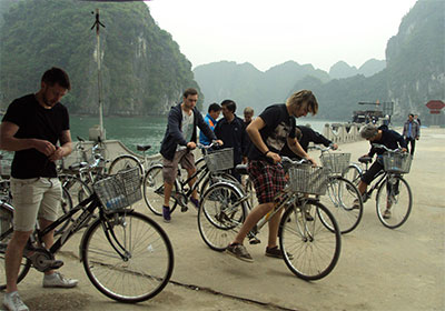 Đi xe đạp quanh đảo, một loại hình du lịch hấp dẫn du khách mỗi khi đến thăm xã đảo Việt Hải.