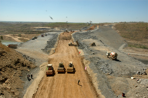 | Lực lượng thi công cơ giới của Tổng công ty Xây dựng Trường Sơn (Bộ Quốc phòng) trên công trường xây dựng Nhà máy thủy điện Buôn Kốp (Tây Nguyên). Ảnh: Trường Sơn. |