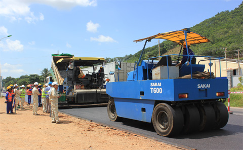 | Phương tiện của Tổng công ty 319 (Bộ Quốc phòng) thi công trên địa bàn tỉnh Ninh Thuận. Ảnh: Hoàng Gia. |