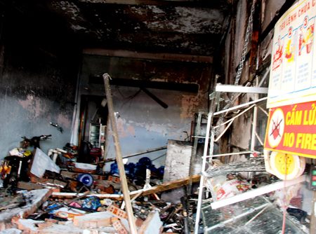 Hiện trường vụ nổ đại lý gas tại quận Bình Tân, TP Hồ Chí Minh ngày 25-10 khiến 3 người bị thương nặng.