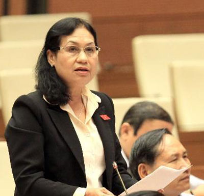 Bà Nguyễn Thị Khá, Đại biểu Quốc hội tỉnh Trà Vinh phát biểu ý kiến. Ảnh: An Đăng - TTXVN.