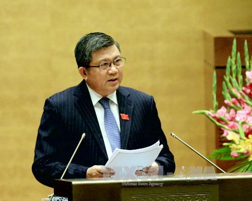 | Ủy viên Ủy ban Thường vụ Quốc hội, Chủ nhiệm Ủy ban Kinh tế của Quốc hội Nguyễn Văn Giàu trình bày Báo cáo. Ảnh: An Đăng/TTXVN. |
