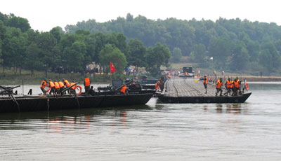 Bộ đội Lữ đoàn 249, Binh chủng Công binh triển khai cầu phao vượt sông trong diễn tập ARDEX 13