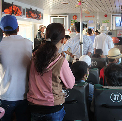 Hành khách chen chúc trên chiếc tàu Lý Sơn 0045.