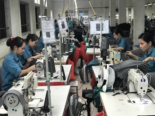 Công nhân Nhà máy Z176 (Tổng cục Công nghiệp Quốc phòng) sản xuất các loại túi đựng trong siêu thị xuất khẩu sang thị trường EU. Ảnh: Hoàng Gia Minh.