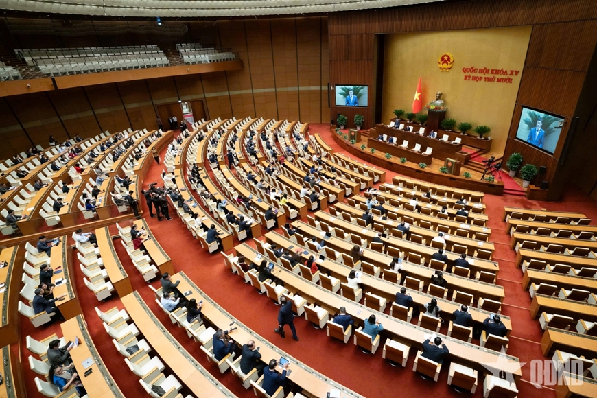 Quang cảnh phiên họp toàn thể tại hội trường của Quốc hội, sáng 3-11.