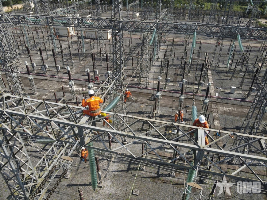 | Cán bộ, công nhân Công ty Truyền tải điện 2 kiểm tra, bảo trì đường dây chuẩn bị cho cao điểm mùa khô 2026. |