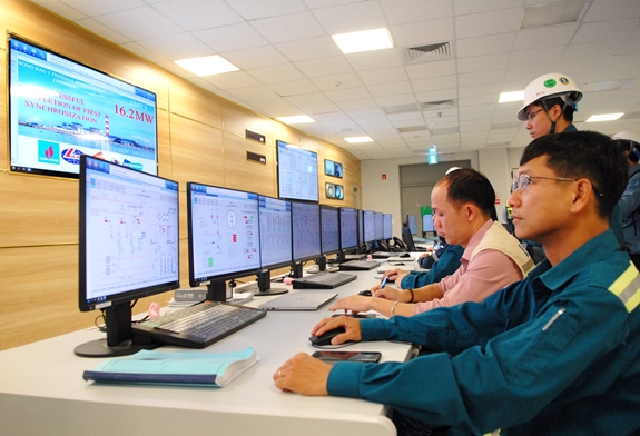 Vận hành hệ thống tại phòng điều khiển trung tâm Nhà máy Nhiệt điện Sông Hậu 1. Ảnh: HÀ DUY |